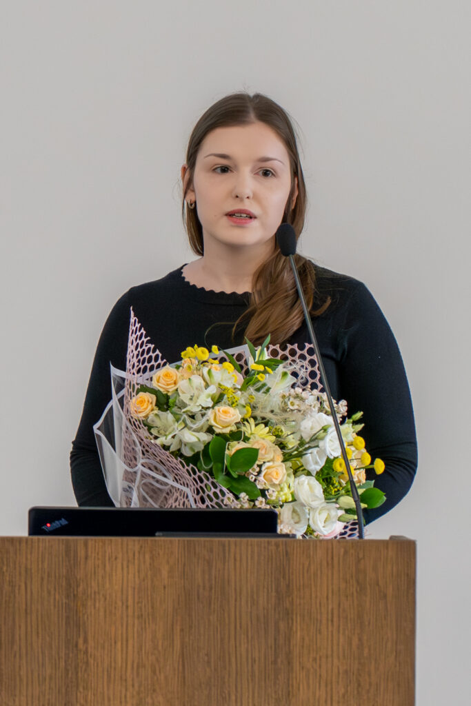 Antroji prof. K. Pelčaro stipendijos laureatė Ieva Vaicekauskaitė pabrėžė tyrėjo darbo komandiškumą. „Norėčiau padėkoti visiems, su kuriais teko bendradarbiauti – be gydytojų, su kuriais teko darbuotis, be slaugytojų, kurios paima reikalingą mėginį, be pacientų, kurie sutinka dalyvauti mano tyrimuose, tikrai nebūtų galimybės atlikti nei vieno tyrimo. Aš viena, be kolegų laboratorijoje, taip pat nebūčiau galėjusi atlikti visų reikalingų tyrimų. Ir didelis ačiū mano vadovei dr. Rasai Sabaliauskaitei. Tikiuosi, kad ir toliau savo moksliniais tyrimais galėsiu padėti žmonėms“, – pasakė I. Vaicekauskaitė