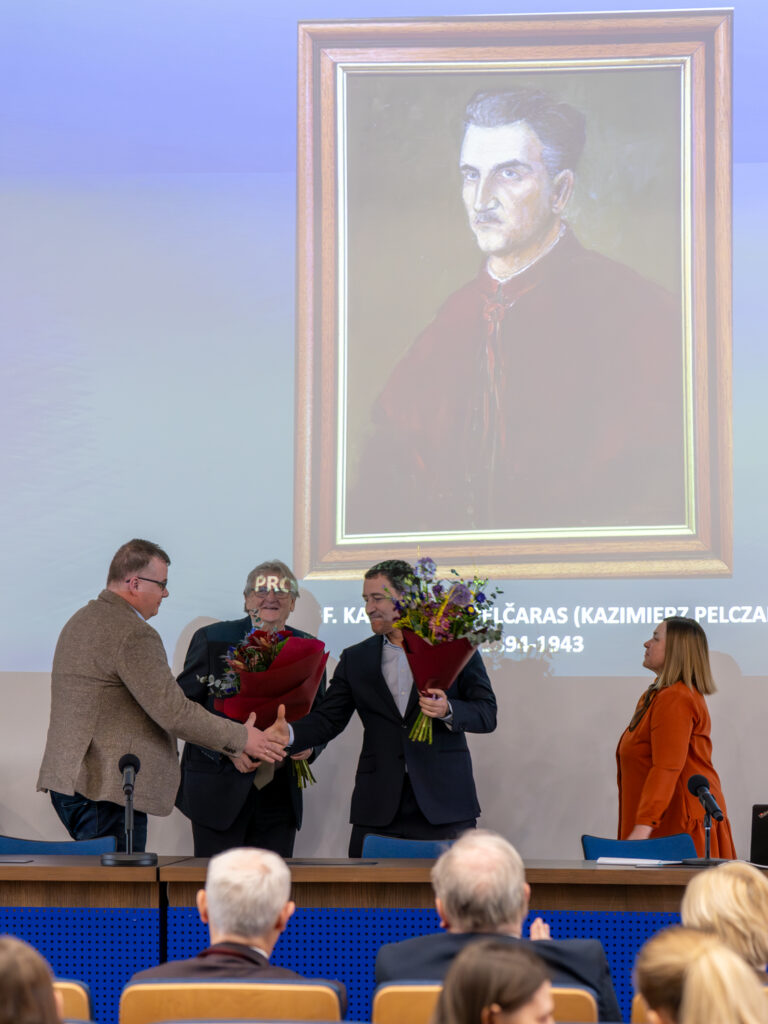 Česlavas Okinčic, Nepriklausomybės signataras, vienas iš prof. Kazimiero Pelčaro pagerbimo iniciatorių Nacionaliniame vėžio institute, linkėjo sėkmės siekiant visaverčio vėžio centro akreditacijos ir pasveikino šių metų prof. K. Pelčaro stipendijos laureatus. „Didelė garbė būti čia įteikiant prof. Kazimiero Pelčaro stipendijas jauniesiems mokslininkams. K. Pelčaras buvo vienas iš tų žmonių, kurie kūrė onkologijos mokslo pamatus Vilniuje, Lietuvoje. Jo vardas simbolizuoja ne tik medicinos istoriją, bet ir atsakomybę tęsti pradėtą darbą, ieškoti naujų žinių, gydymo būdų ir naujos vilties pacientams. Onkologijos mokslas šiandien yra viena iš sudėtingiausių medicinos sričių. Kova su vėžiu reikalauja ne tik technologijų, laboratorinių ir klinikinių tyrimų, ji reikalauja drąsos kelti klausimus, kantrybės ieškant atsakymų ir tikėjimo, kad kiekvienas atradimas, net ir labai mažas, gali išgelbėti žmogaus gyvybę. Todėl ypač svarbu, kad į šį kelią ateina jauni mokslininkai. Žmonės, kurie pasirenka sudėtingą, bet nepaprastai prasmingą kelią. Šios stipendijos yra ne tik finansinė parama. Tai pasitikėjimo ženklas ir kvietimas tęsti prof. K. Pelčaro pradėtą misiją. Noriu nuoširdžiai padėkoti Kristinai Rodkevič, kuri buvo prof. K. Pelčaro įamžinimo Nacionaliniame vėžio institute pradininkė. Taip pat dėkoju dr. Albertui Uliui, kuris vadovavo komisijai dėl prof. K. Pelčaro vardo įamžinimo institute. Labai svarbu, kad iniciatyvą parėmė Lietuvos lenkų medikų draugija, kuri dirba su rėmėjais“, – pasakė Česlav Okinčic.