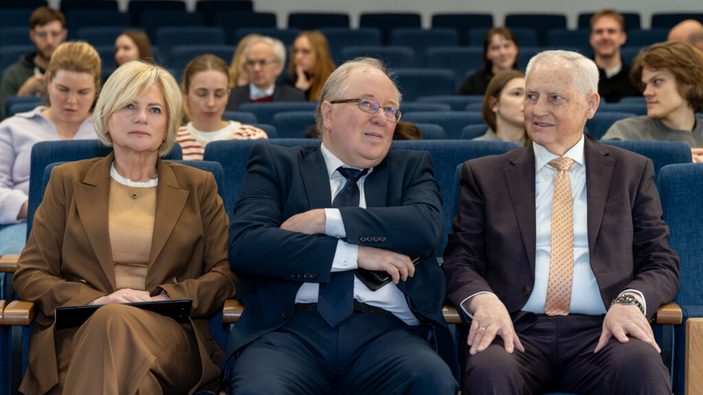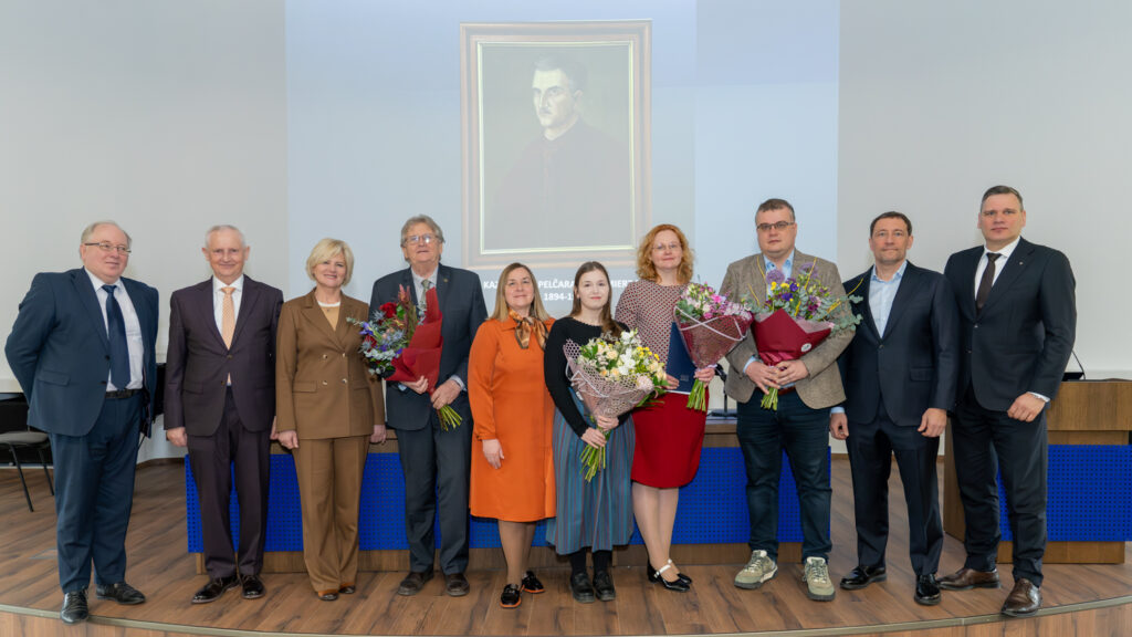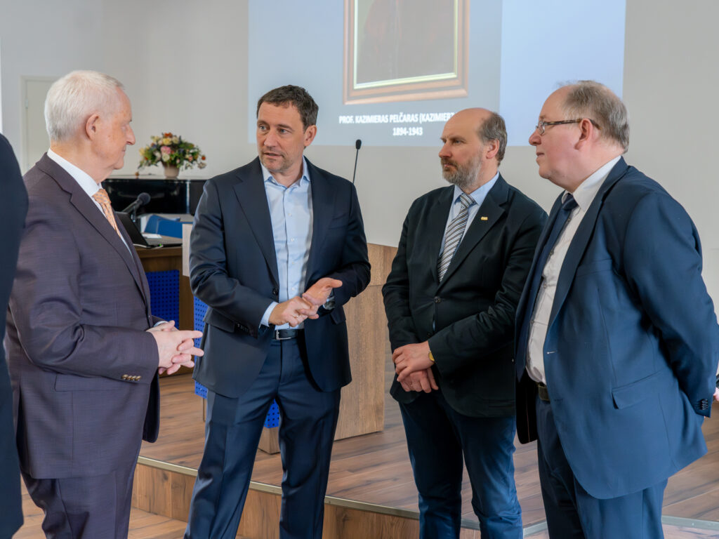 Doc. dr. V. Pečeliūnas pasveikino prof. Ričardą Rotomskį ir prof. Vitalijų Karabanovą, kurie už teranostikos srities mokslinius darbus šiemet apdovanoti Lietuvos mokslo premija.