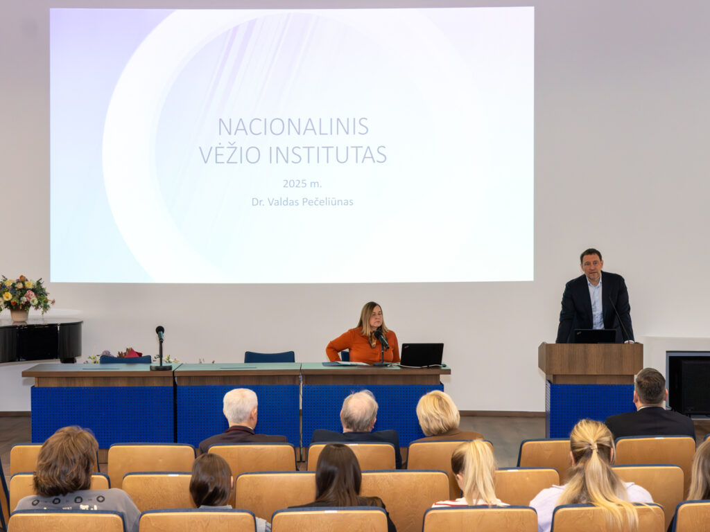 Doc. dr. V. Pečeliūnas, pristatydamas NVI 2025 m. ataskaitą, pabrėžė, jog įvykusios didžiulės transformacijos pagrindinis tikslas– veiklos tęstinumas. „Per 2025 m. visos NVI keltos užduotys buvo įgyvendintos – klinikinė NVI dalis perduota VUL Santaros klinikoms, sukurtas instituto veiklos administravimo modelis, užtikrintas aukšto lygio mokslinės produkcijos kūrimo ir veiklų tęstinumas ir sukurtas naujos kartos vėžio registras. NVI yra viena iš svarbiausių Vilniaus onkologijos sektoriaus sudedamųjų dalių, tad 2025 m. sukurti NVI ir NVC bendradarbiavimo modeliai leido užtikrinti biobanko, klinikinių tyrimų ir kitų laboratorijų veiklų tęstinumą, duomenų mainus ir, bendradarbiaujant su NVC ir VU, siekti visapusiško vėžio centro akreditacijos“, – pasakė doc. dr. V. Pečeliūnas.