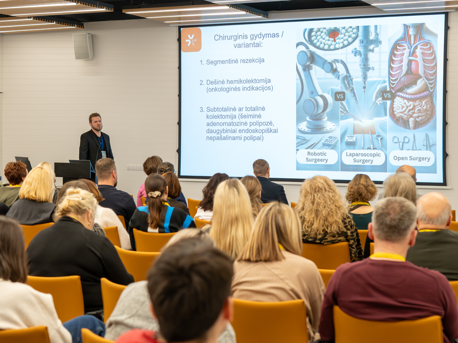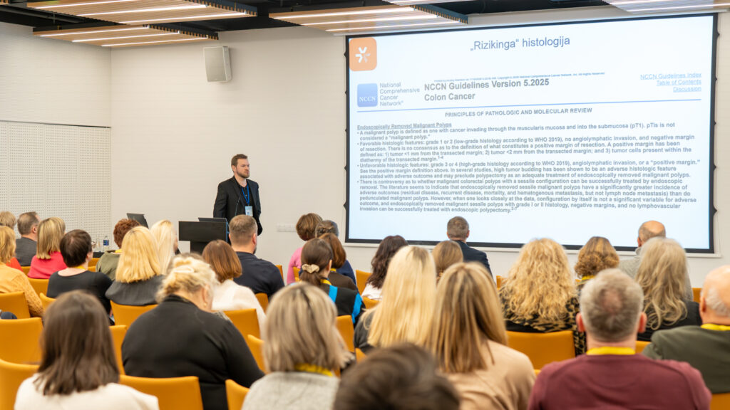 „Konferencijos,  kurią suorganizavo Nacionalinis vėžio centras, Lietuvos onkologų draugija, Lietuvos endoskopuotojų draugija, Lietuvos gastroenterologų draugija, formatas visiškai naujas, to mes nesame bandę – kalba du lektoriai vienu metu apie tą pačią iššūkių keliančią būklę. Tikslas – parodyti visapusišką požiūrį į ligą,   komplikaciją ar būklę  tam, kad mes sugebėtume pasiūlyti ne tik maksimalų savo srities sprendimą, bet žinoti, ką gali pasiūlyti kolega. Kad susėdę kartu kalbėtume viena kalba, kad rezultatas duotų maksimalią vertę pacientui. Kad būtų ne konkurencija ar savo metodo fanatiškas propagavimas, bet, atsižvelgiant į žmogaus individualią situaciją, jo amžių, gretutines ligas, gyvenamąją aplinką, būtų parinktas maksimalus, komfortiškas, efektyvus ir, aišku, šiuolaikiškas gydymo būdas. Be abejonės, tai lemia dialogas tarp specialistų. Mes turime būti komandoje, pasitikėti vieni kitų sprendimais, bet, pirmiausia, mes turime žinoti, ką gali pasiūlyti kolega – kokiu metodu jis gydo tokias patologijas, gal kitas metodas bus saugesnis geresnis, patikimesnis. Bet jei tu nežinai dirbdamas pirmame aukšte, kaip dirba kolegos septintame aukšte, net ir negali pacientui pasiūlyti, nes nepažįsti kitų metodų.