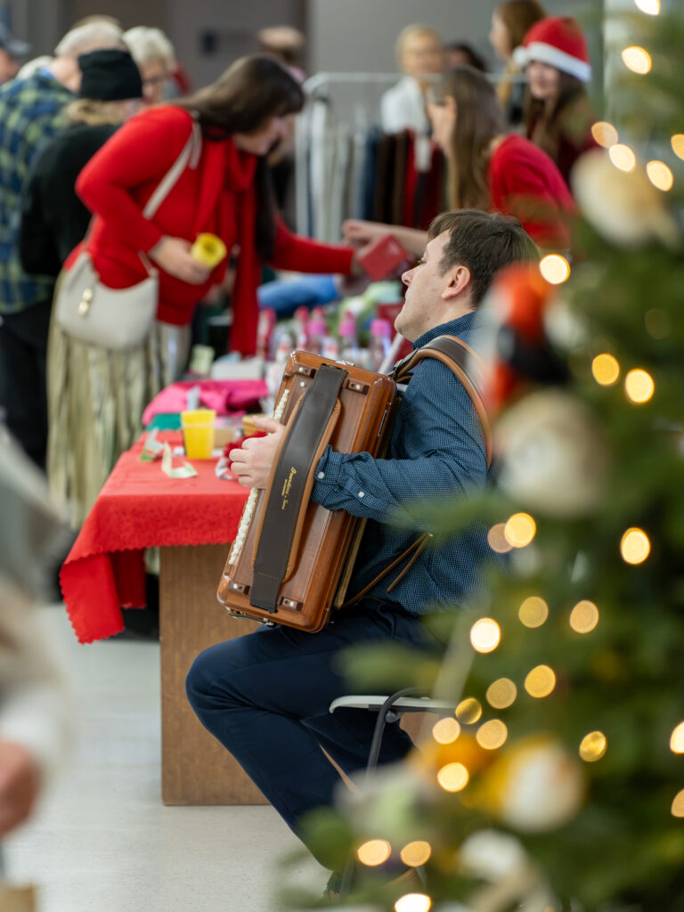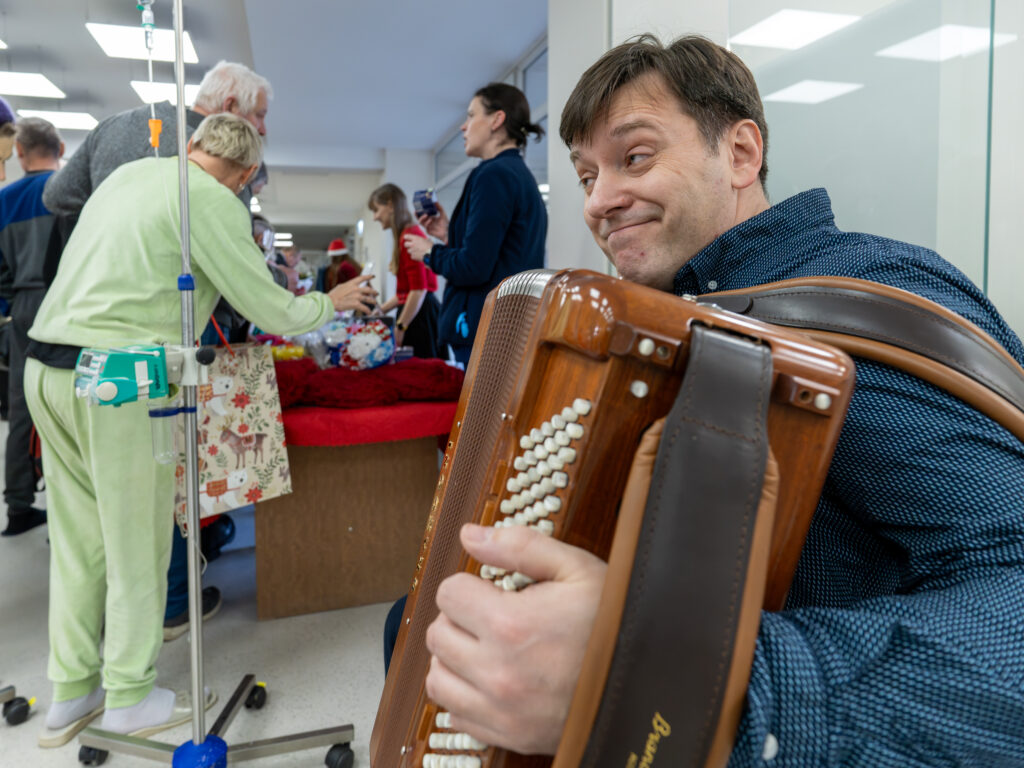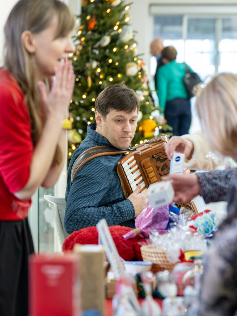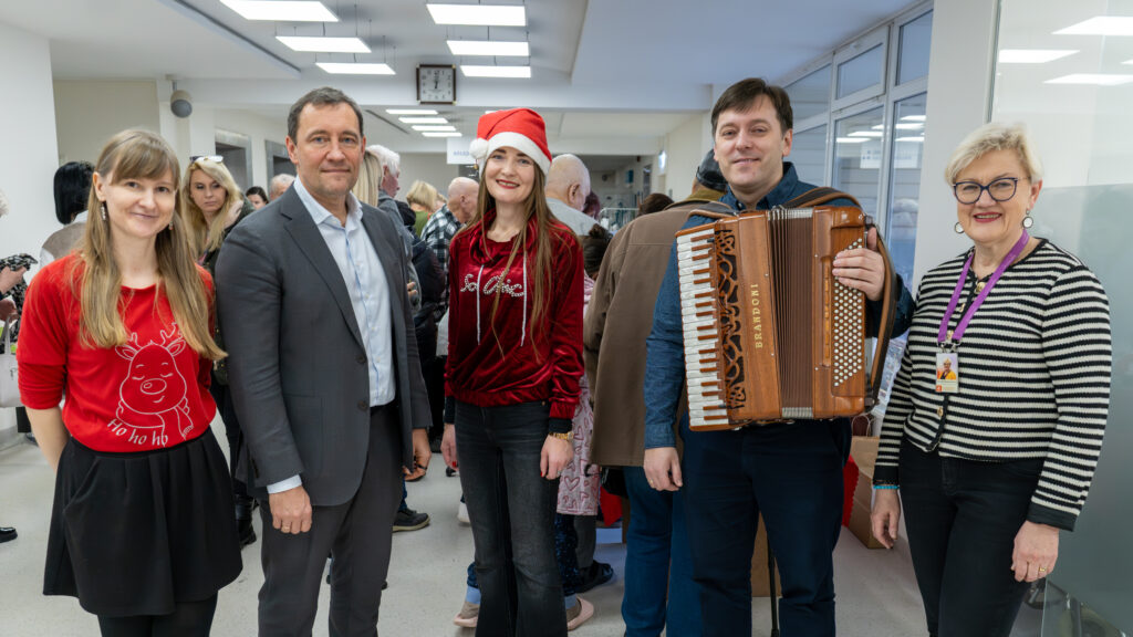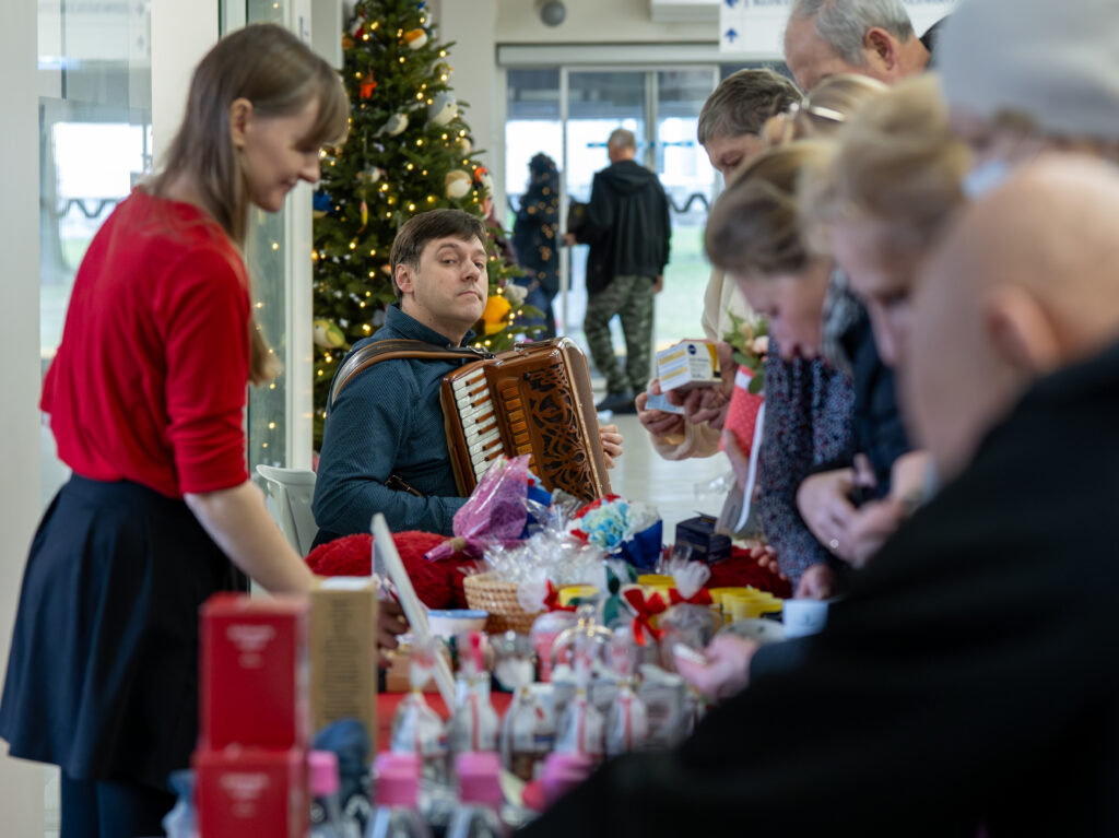 Jaukus šventinis šurmulys vėl užpildė NVC centrinį holą: skambant akordeonininko Andriaus Balachovičiaus geros valios šventiniam koncertui, vyko jau tradicija tapusi NVC kalėdinių dovanėlių mugė „Pasiimk“. Ši iniciatyva NVC organizuojama antrus metus iš eilės. Mugė „Pasiimk“ unikali tuo, kad joje nebuvo jokių pinigų – NVC bendruomenės, socialinių partnerių ir kitų geros valios žmonių sunešti rankdarbiai ir kitos dovanėlės NVC pacientams buvo išdalinti nemokamai. Renginį organizavęs NVC Viešųjų ryšių skyrius nuoširdžiai dėkoja visiems, kurie prisidėjo prie šios geros valios iniciatyvos.