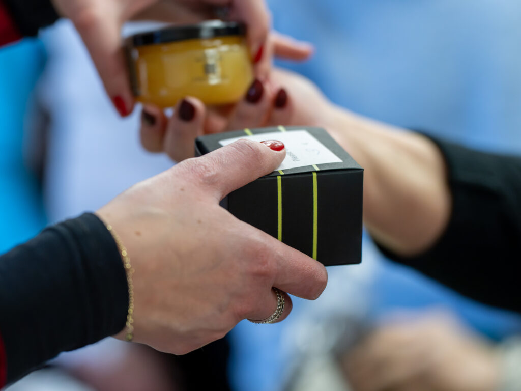 Prie mugės rankų darbo žvakėmis ir kitais suvenyrais prisidėjusi NVC socialinė partnerė ir bičiulė Monika Plepė sako šio renginio laukti pradėjusi dar rudenį. „Smagu, kad ši mugė jau tampa gražia tradicija NVC, o aš kaskart nekantriai laukiu, kada galėsiu prisidėti ir dalintis ne tik geromis emocijomis, bet ir rankų darbo dovanėlėmis,“ – sako NVC mugės savanorė, rankdarbių kūrėja Monika Plepė.
