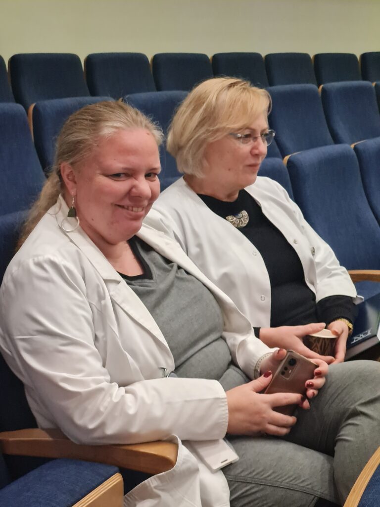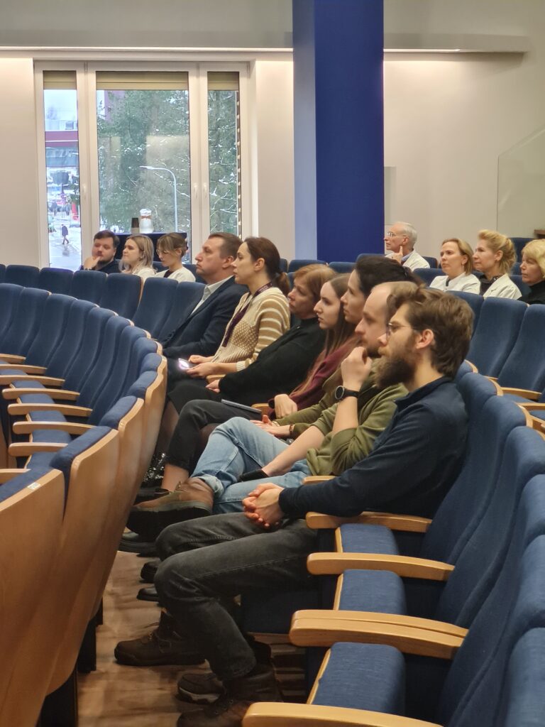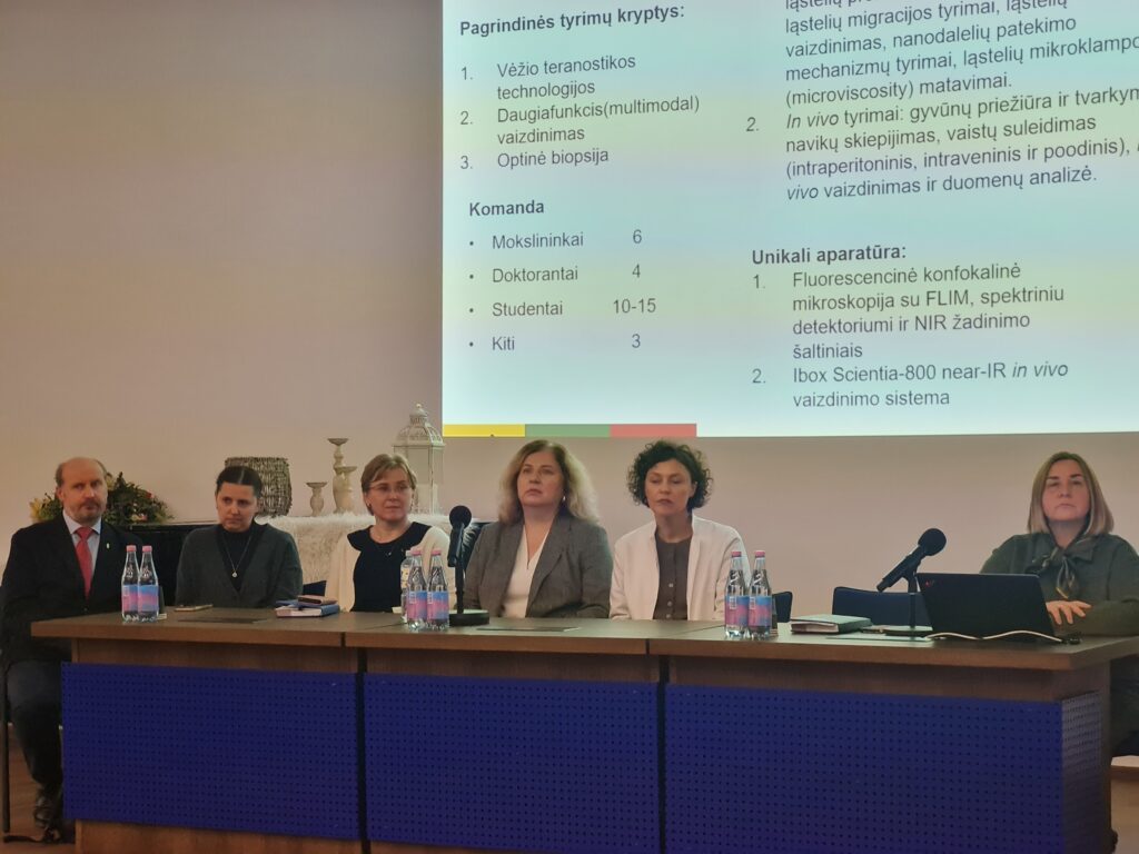 Vienas po kito kolegos pristatė savo vadovaujamų laboratorijų komandas ir vykdomus darbus: Klinikinių tyrimų centro vedėja dr. Edita Baltruškevičienė, Molekulinės onkologijos laboratorijos vedėjas prof. Kęstutis Sužiedėlis, Imunologijos laboratoriją pristatė dr. Neringa Dobrovolskienė, Biobanką – dr. Daiva Dabkevičienė, Genetinės diagnostikos laboratoriją – dr. Rasa Sabaliauskaitė.