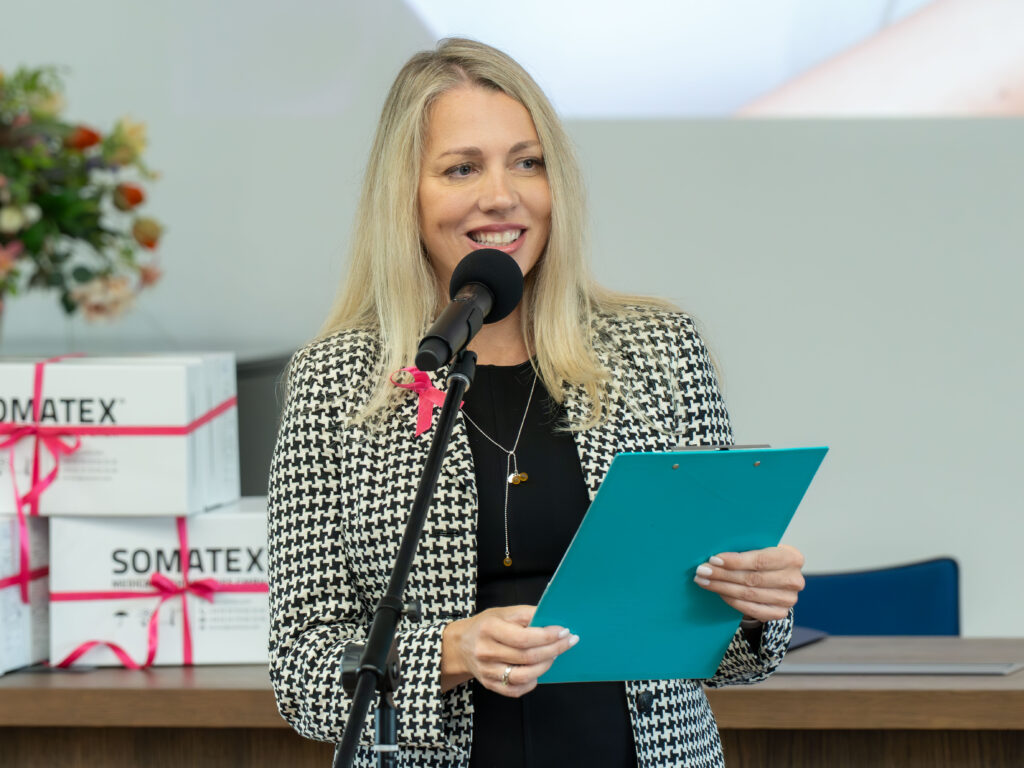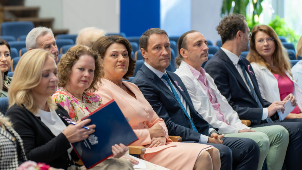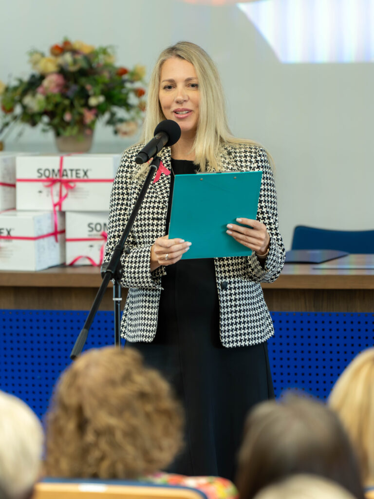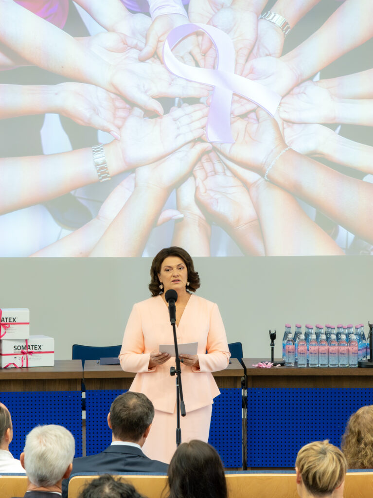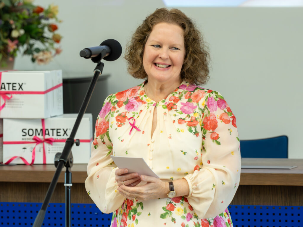 Tarptautinės moterų asociacijos Vilniuje vadovė Ugnė Kukliauskaitė-Kairienė akcentavo onkologų, savanorių, savivaldos, diplomatinių bendruomenių ir verslo susitelkimą bendram tikslui – moterų sveikatai gerinti.