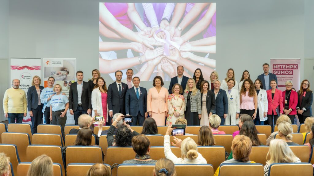 Spalis – krūties vėžio žinomumo mėnuo. Siekiant atkreipti dėmesį į krūties vėžio prevencijos svarbą, Nacionaliniame vėžio centre lankė pirmoji ponia Diana Nausėdienė ir Jungtinės Karalystės ambasadorė Elizabeth Boyles. Šis renginys – ilgametė Nacionalinio vėžio centro ir Tarptautinės moterų asociacijos Vilniuje (IWAV) tradicija. Renginiu siekiama didinti moterų rūpestį savo sveikatai, skatinti sąmoningumą dėl krūties vėžio tikrintis prevenciškai. Į NVC prevencinei mamografijai autobusais taip pat atvyko moterų iš šalies regionų – Kupiškio, Alytaus, Vilniaus rajono. Tai – tęstinė Nacionalinio vėžio centro ir Tarptautinės moterų asociacijos Vilniuje socialinė iniciatyva „rožinė dovana moterims“.