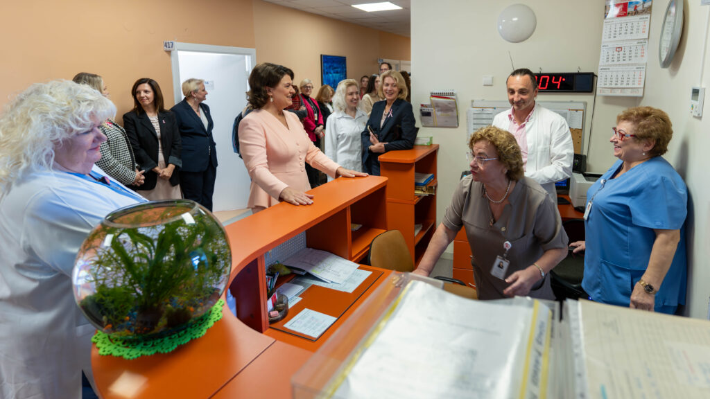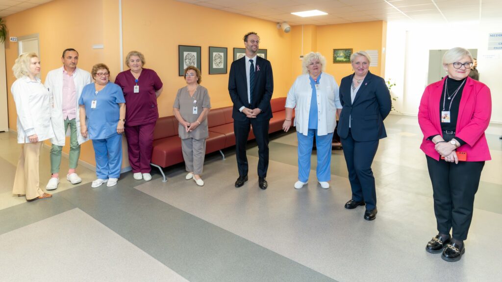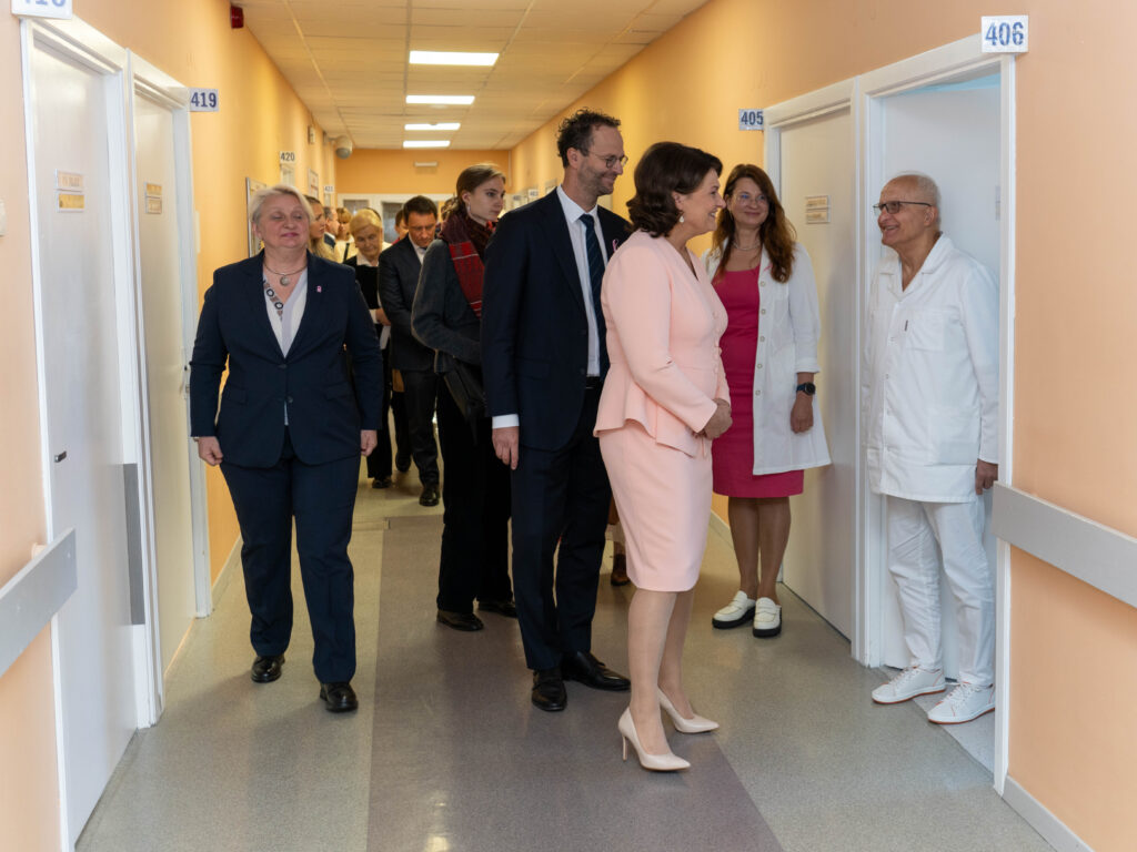 Pirmoji ponia D. Nausėdienė aplankė Krūties ligų chirurgijos ir onkologijos skyriuje besigydančias moteris. Greitai sveikstančios po krūties operacijos pacientės nuoširdžiai dėkojo p. Dianai už dėmesį ir dėkodamos už profesionalumą ir žmogiškumą vardijo jas operavusių chirurgų – gydytojos Algės Leveckytės, dr. Sauliaus Bružo, dr. Mariaus Striogos pavardes, nuoširdų „ačiū“ skyrė ir visam skyriaus personalui.