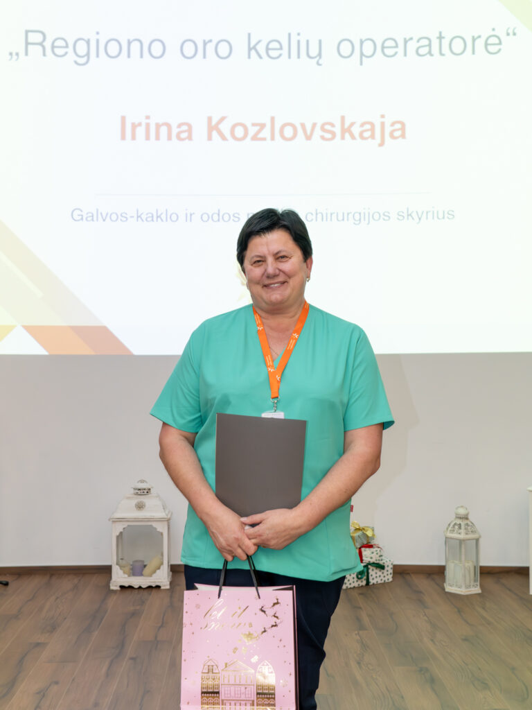 “Regiono oro kelių operatorė” – bendrosios praktikos slaugytoja Irina Kozlovskaja, Galvos-kaklo ir odos navikų chirurgijos skyrius.