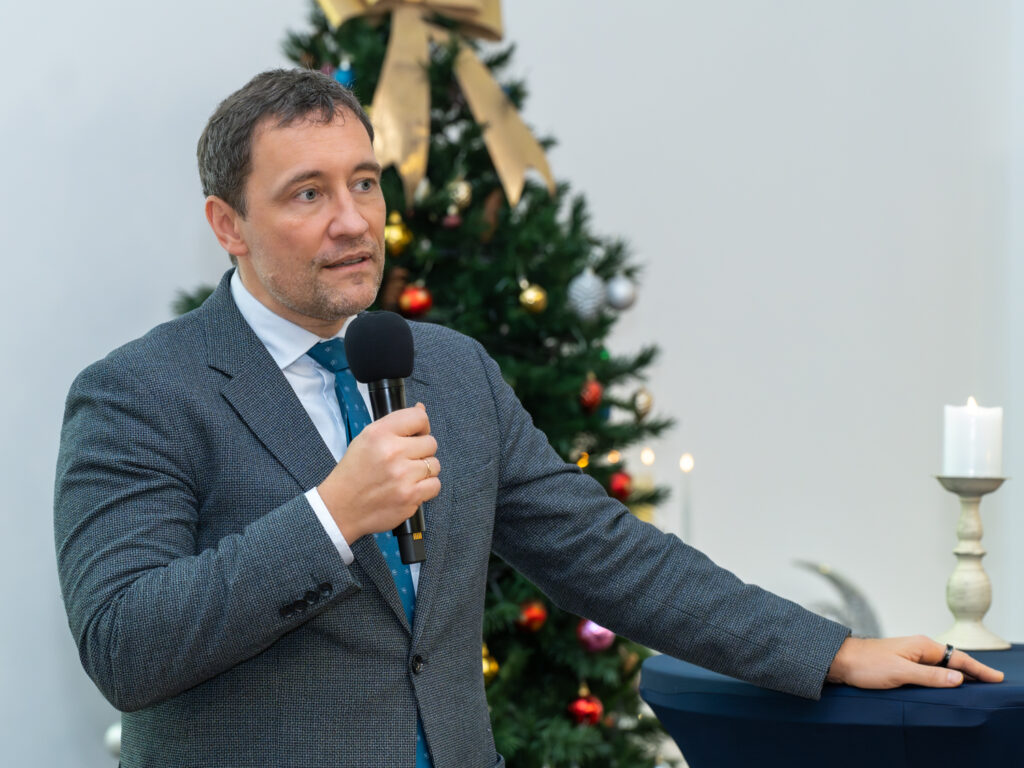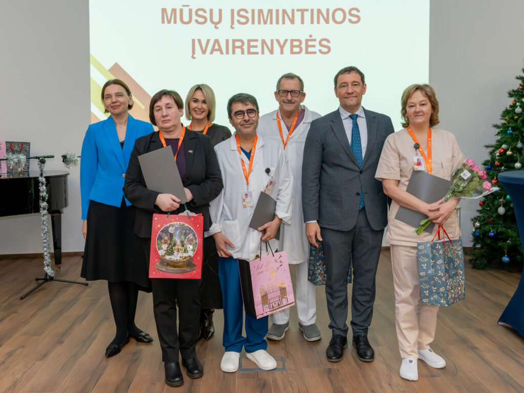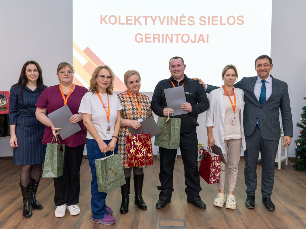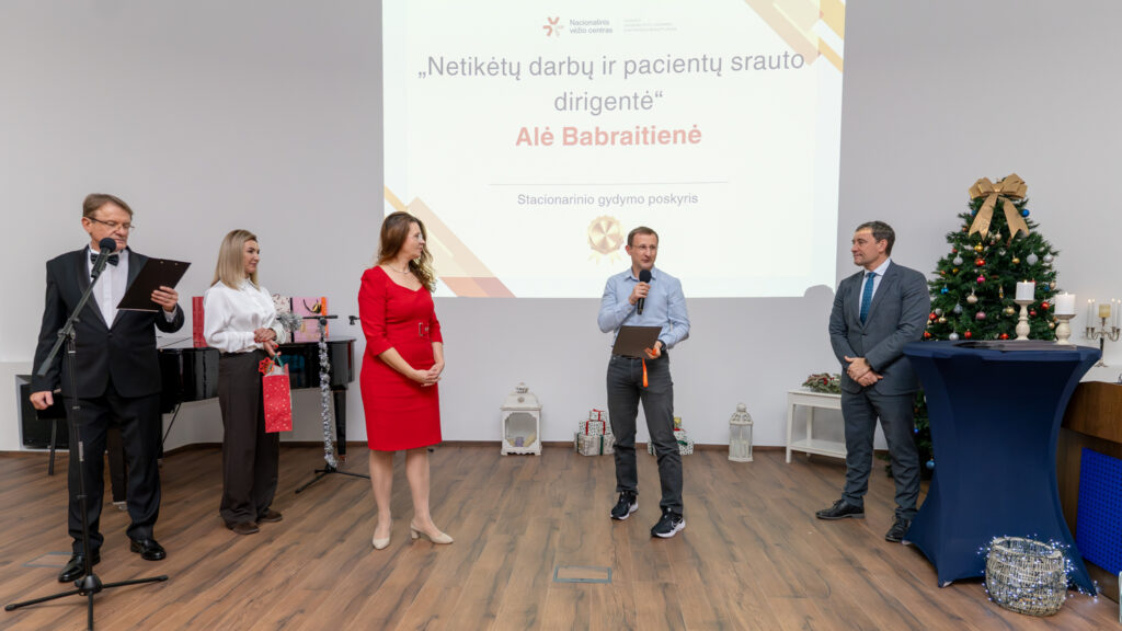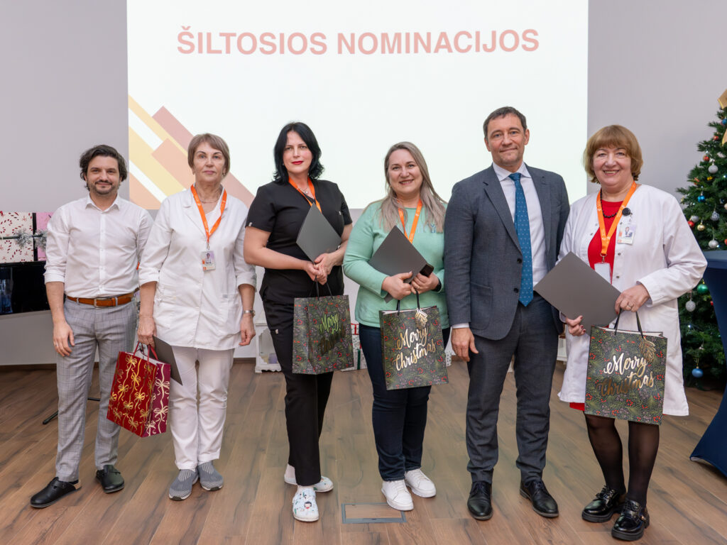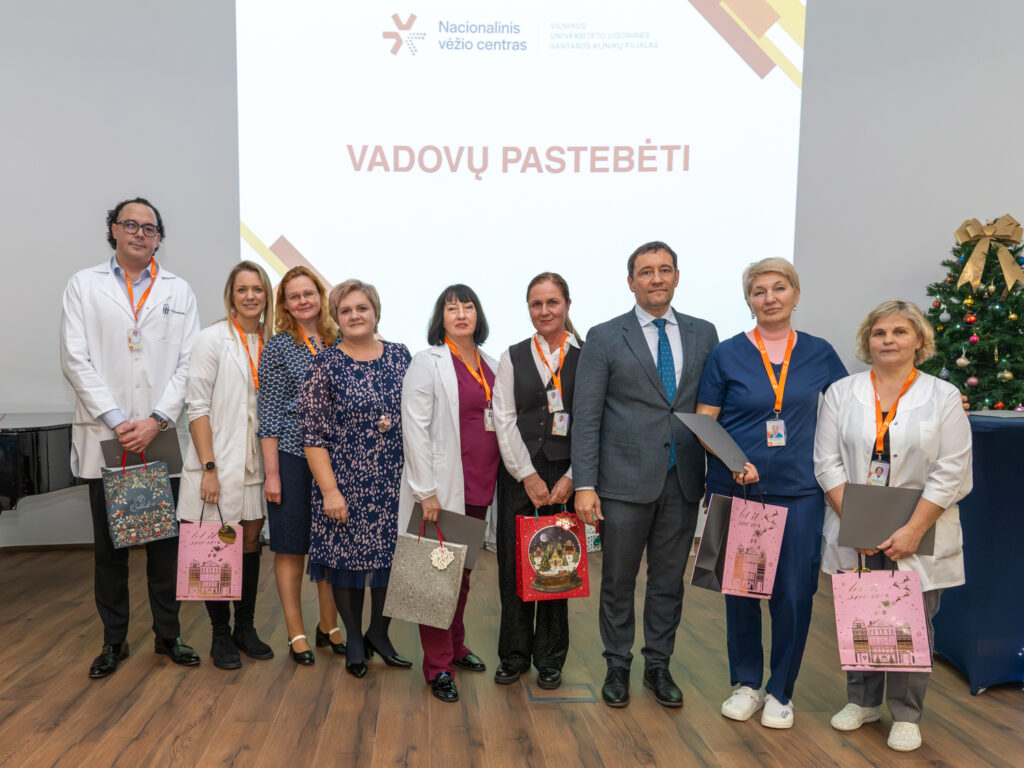 „Tiek daug mūsų kolektyvo žmonių didžiojoje prof. K. Pelčaro salėje man dar neteko matyti. Labai džiugu, kad nominacijų kūrimas ir teikimas mus suvienija kaip profesionalus, kaip žmones, kaip bendruomenės narius. Šiandien sveikiname tuos, kurie buvo ryškesni, labiau matomi praeinančiais metais. Bet mes visi drauge nuveikėme tuos darbus, kurie buvo būtini, susitvarkėme su iššūkiais dėl pagrindinio tikslo, kad mūsų pacientai gautų kokybiškesnes paslaugas ir gautų jas laiku. Visa tai atlikome kaip viena sutartinai dirbanti profesionalų komanda. Labai svarbu tą žinoti laukiant didžiųjų metų švenčių – šv. Kalėdų ir Naujųjų metų, taip pat galvojant ir ruošiantis  ateinančių metų pagrindiniam iššūkiui, įgyvendinant strateginius planus“, – pasakė Nacionalinio vėžio centro direktorius doc. dr. Valdas Pečeliūnas.