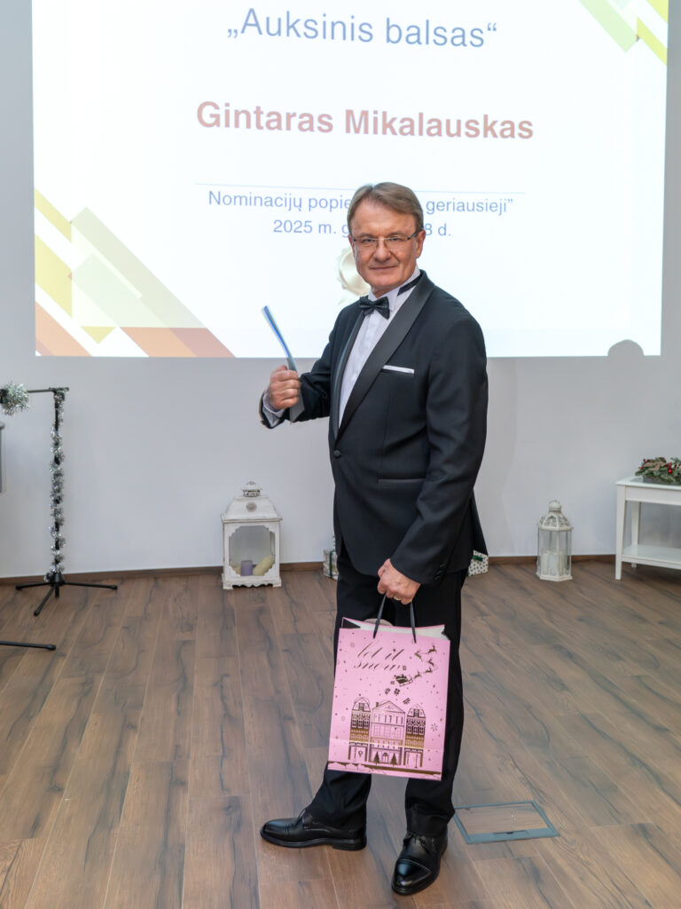 Ypatinga nominacija “Auksinis balsas” buvo įteikta renginio vedėjui Gintarui Mikalauskui, ilgamečiam onkologų bendruomenės bičiuliui.