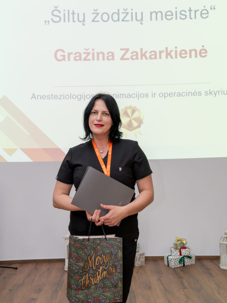 „Šiltų žodžių meistrė“ –  anestezijos ir intensyviosios terapijos slaugytoja (reanimacijai) Gražina Zakarkienė, Anesteziologijos, reanimacijos ir operacinės skyrius;
