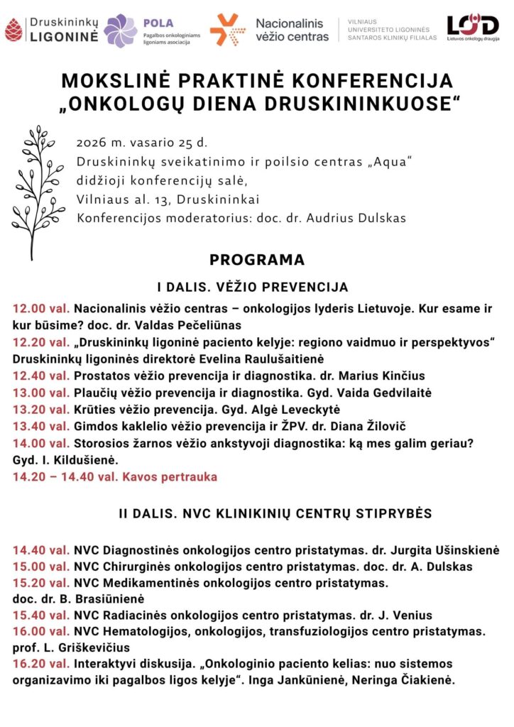 Nacionalinio vėžio centro, Lietuvos onkologų draugijos, VšĮ Druskininkų ligoninės ir POLA organizuojama mokslinė-praktinė konferencija Druskininkų medikams.