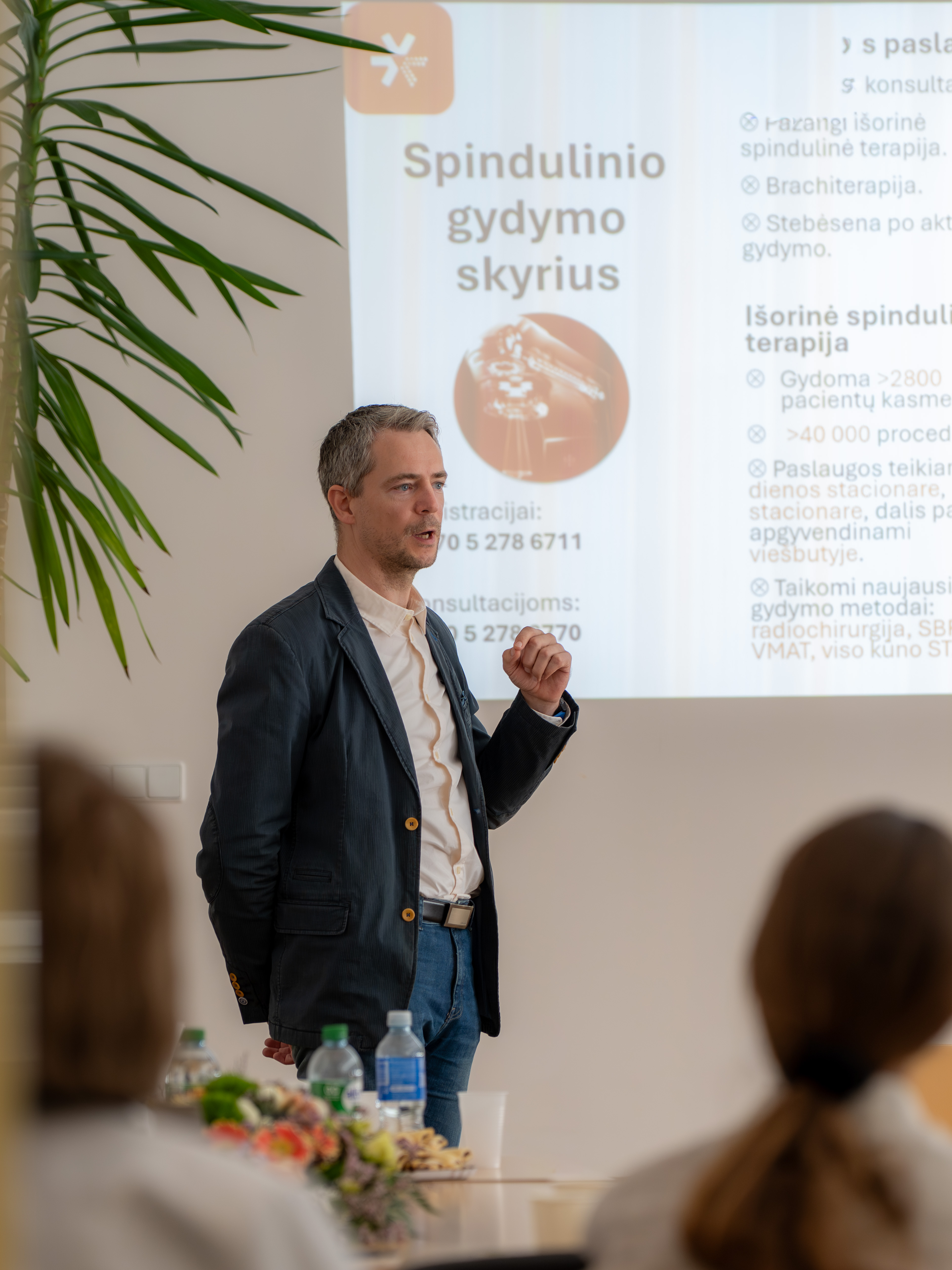 „Jūs esate labai svarbus ir didelis mūsų partneris – 3 procentai visų į Nacionalinį vėžio centrą atvykstančių pacientų yra iš Elektrėnų. Tai, pavyzdžiui, yra daugiau nei iš Utenos ar Panevėžio. Todėl puikiai suprantame, kad turime pasistengti dėl jūsų. Todėl šiandien esame čia. Pavasarį jau lankėmės Utenoje, dabar atvykome pas jus. Regiono sujungimas onkologijos paslaugų prasme yra labai svarbus. Todėl mūsų planas yra kartą per metus susitikti ir išgirsti iš jūsų klausimus ir problemas, kad galėtume jas išspręsti. Juk atvykome čia, nes esame atsakingi už vėžiu sergančius pacientus, esame vienintelis vėžio centras Vilniaus regione. Todėl mums labai svarbu su šioje Lietuvos dalyje dirbančiais kolegomis turėti gerą bendradarbiavimą ir užtikrinti sklandų paciento kelią.