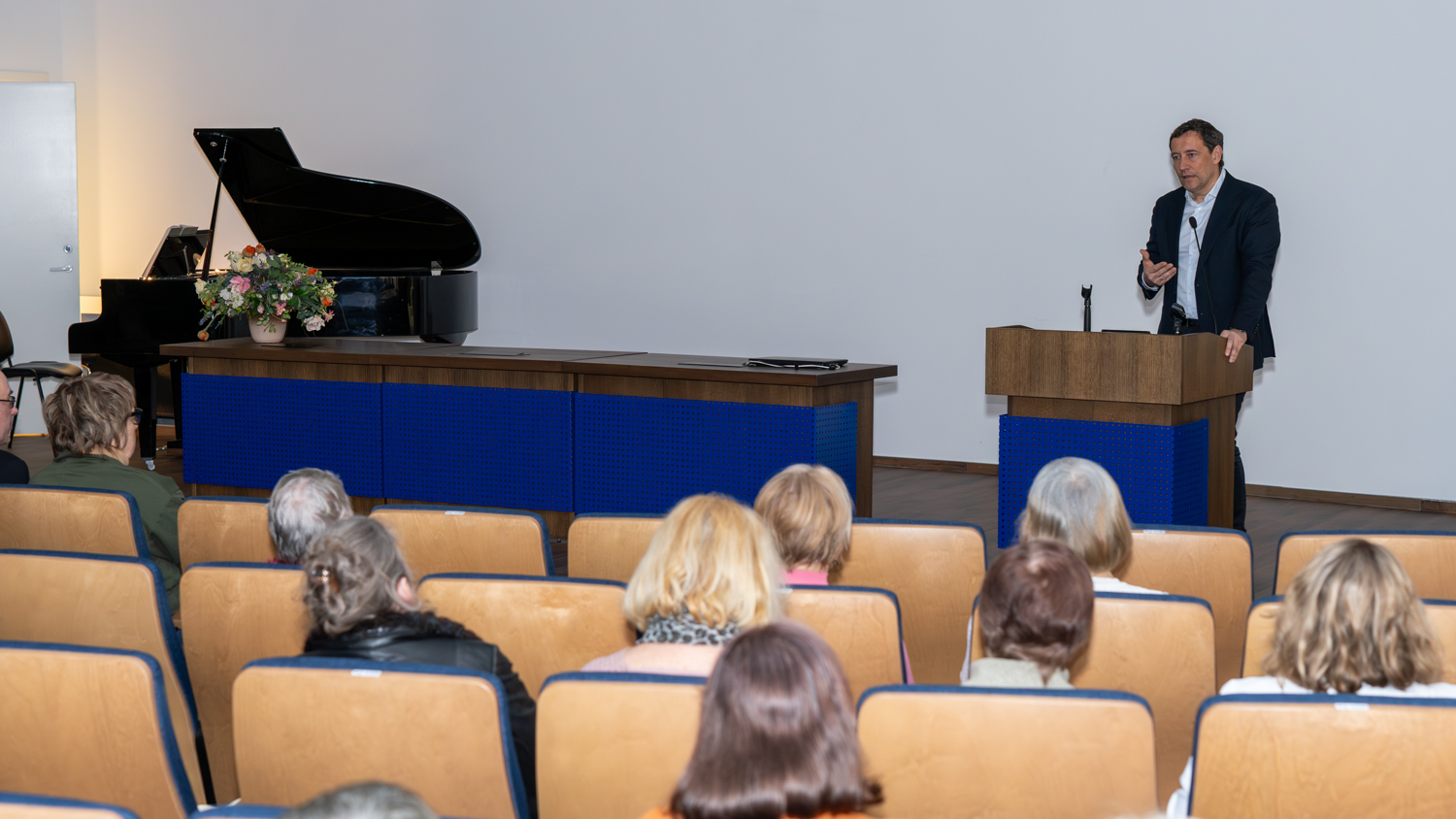 Nacionalinio vėžio centro direktorius doc. dr. Valdas Pečeliūnas, dėkodamas Dariui Mažintui ir Rimui Sakalauskui, priminė, jog medicina XX a. pabaigoje darėsi vis labiau technokratinė. „Šiandien medicinos pažanga didžiulė, galime žmogui padėti ženkliai daugiau nei prieš 10 metų. Taip pat medicina sukasi į žmogų, labai ryškus medikų veiklos humanizavimas – suvokiame žmogų kaip visumą. Žmogus kaip asmenybė turi gauti pagalbą. Muzikos ir meno terapija – venas iš stipriausių dalykų, kurie gali padėti žmogui. Yra atlikti moksliniai tyrimai, jų analizė, kuri įrodo muzikos terapijos galimybes – ji mažina nerimo lygį, pagerina nuotaiką, sumažina net skausmą. Žmonės, kurie atgauna vidinę ramybę, žymiai geriau, su didesne valia eina per gydymo kelią. Onkologijoje gydymo kelias yra sunkus, tad muzika, menas padeda žmogui susitelkti ir eiti šiuo keliu“, – pasakė doc. dr. V. Pečeliūnas.