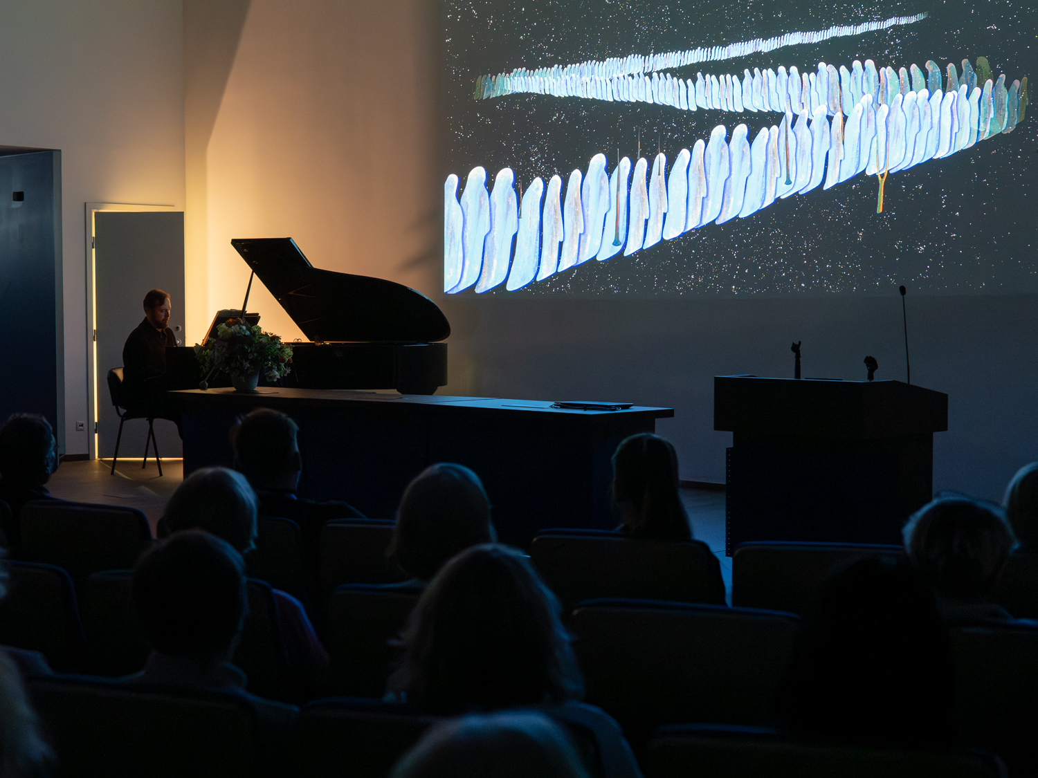 Projekto meninė ašis remiasi žymaus Lietuvos kompozitoriaus Mikalojaus Konstantino Čiurlionio kūryba – skambėjo fortepijonui aranžuota simfoninė poema „Miške“. Publiką pakerėjo ir renginio pradžioje atliktos  M. K. Čiurlionio harmonizuotos lietuvių liaudies dainos, kurias lydėjo jų nuotaiką atspindinti vizualinė instaliacija. Muzikos ir vaizdo sintezė kvietė žiūrovus į vidinės ramybės, susitelkimo ir refleksijos patirtį.