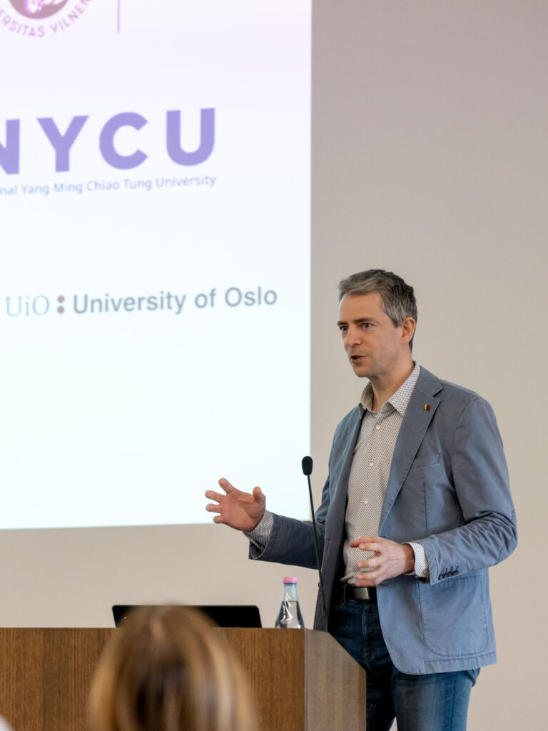 NVC ir NVI direktorius doc. dr. Valdas Pečeliūnas pristatė Visapusiško vėžio centro vystymo viziją ir planus, mokslo ir praktikos svarbą, svarbiausias NVC ir Santaros klinikų vykdomas veiklas.