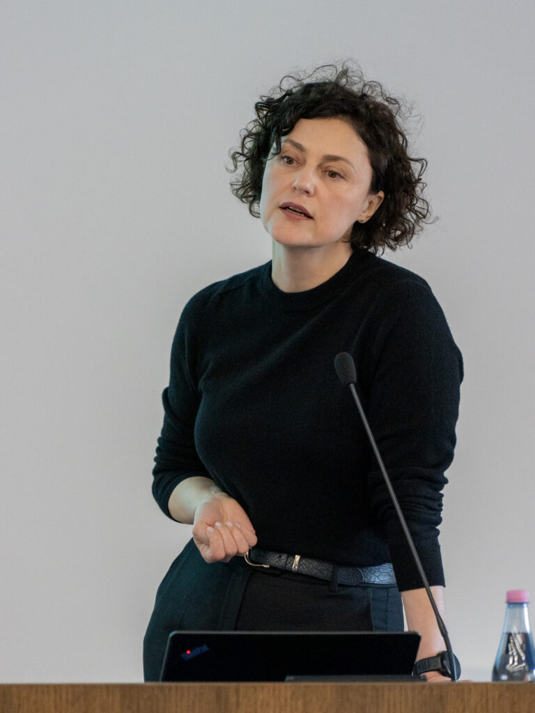 Dr. Edita Baltruškevičienė pristatė NVC ir NVI vykdomus klinikinius tyrimus. Svečiai domėjosi biobankų veikla.